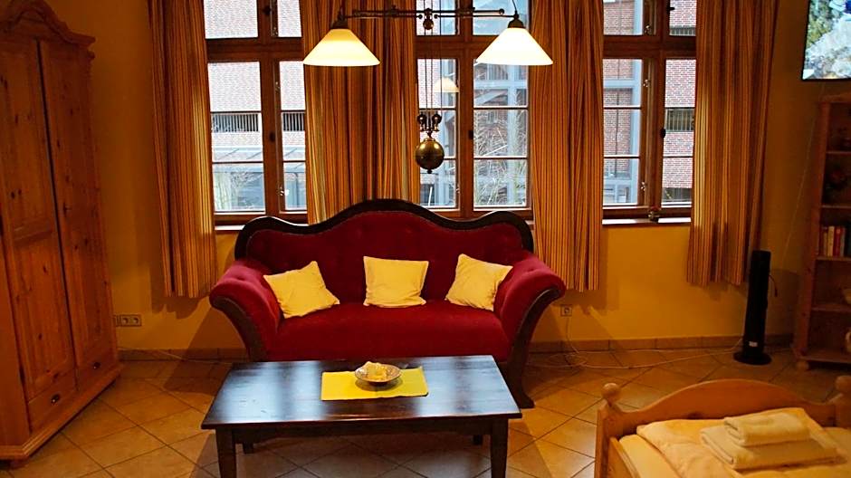 This beautiful room is furnished in a medieval style. It offers a view of the water tower and the Old Tower as well as space for an extra bed. It is quietly located but is near all Lüneburg's historic attractions.